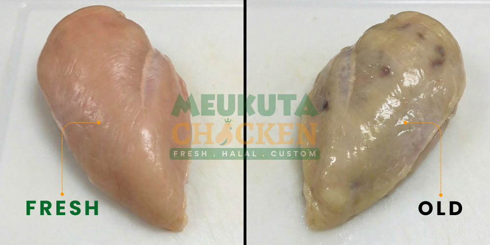 Warna yang tidak alami menandakan ayam disimpan terlalu lama, tidak segar, atau terkontaminasi suhu penyimpanan tidak tepat.